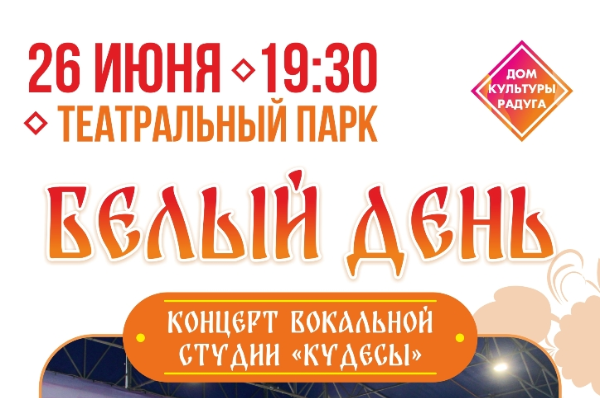 26 июня прошел концерт "Белый день". Несмотря на капризы погоды, выступление образцовой студии народного пения "Кудесы" в Театральном парке состоялось!