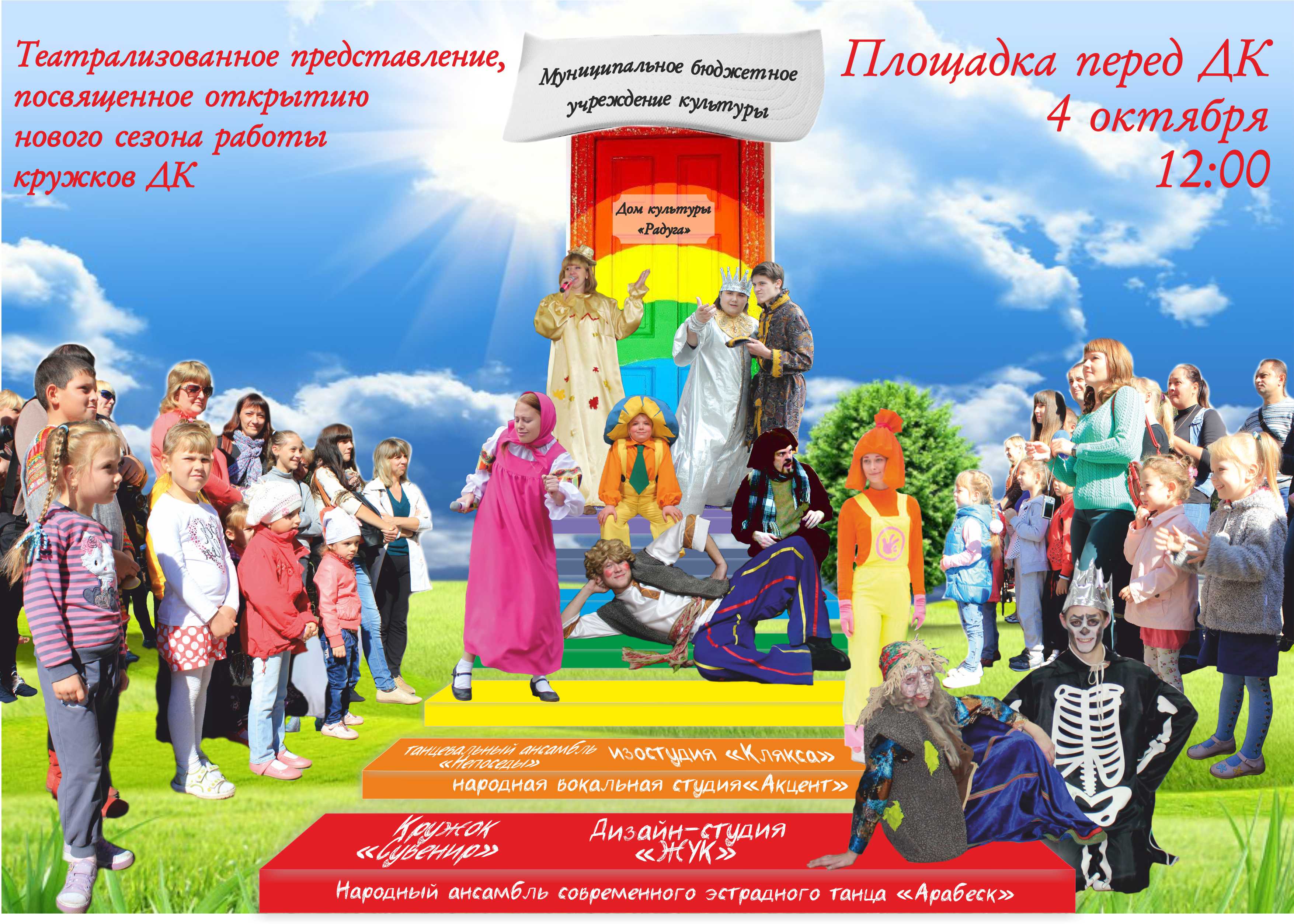 На площадке перед ДК состоится театрализованное представление, посвященное открытию нового сезона работы кружков. |