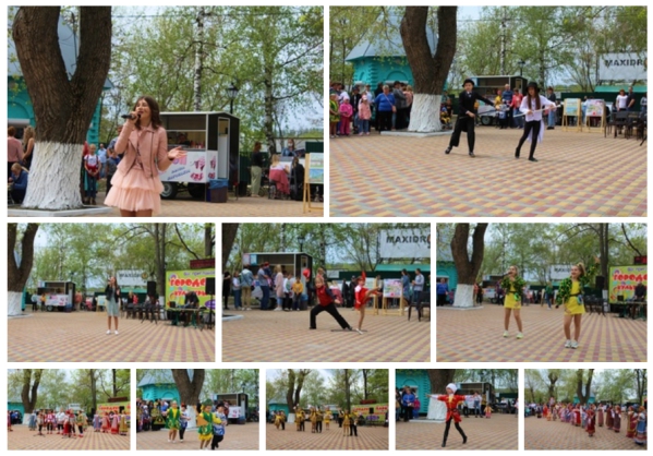 Народная вокальная студия «Акцент» и народный ансамбль современного эстрадного танца «Арабеск» приняли участие в торжественном открытии празднования Дня города 15 мая 2015 года.