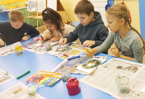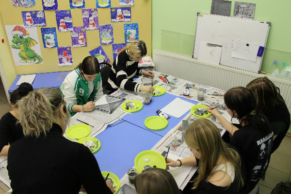 4 января в гостях у кружка "Сувенир" побывали четвероклассники из школы №11. На мастер-классе ребята создавали талисман наступившего года — ёлочную игрушку-лошадку.