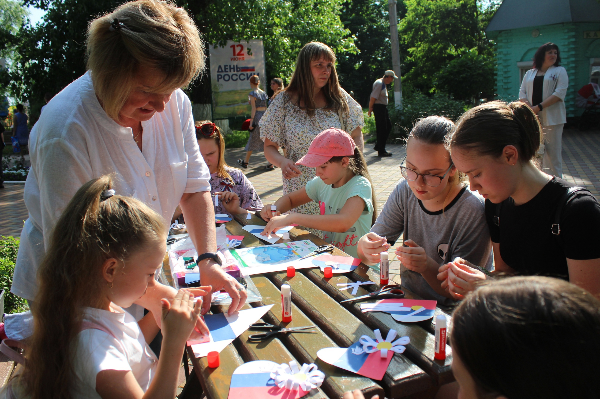 Кружки декоративно-прикладного и изобразительного творчества ДК "Радуга" провели в Городском парке культуры и отдыха праздничные мастер-классы, приуроченные ко Дню России.