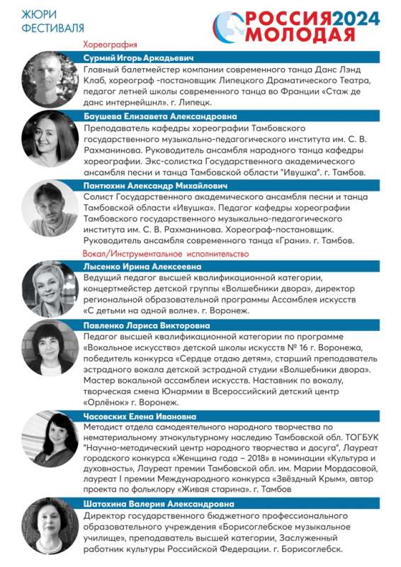 Знакомим вас с составом жюри Всероссийского фестиваля-конкурса "Россия молодая - 2024"