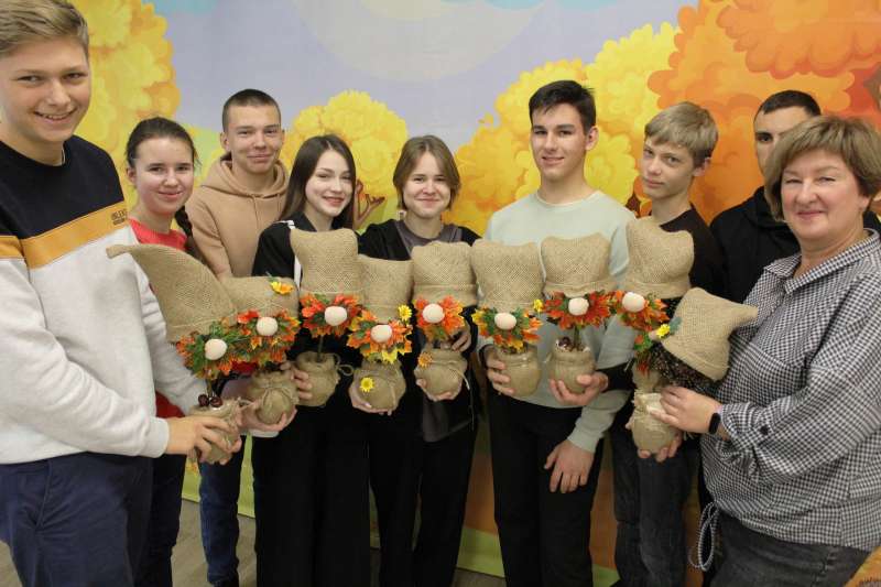 Вот такое осеннее чудо - топиарий в виде гномика, сделали ученики СОШ №6 на нашем мастер-классе.