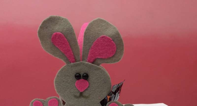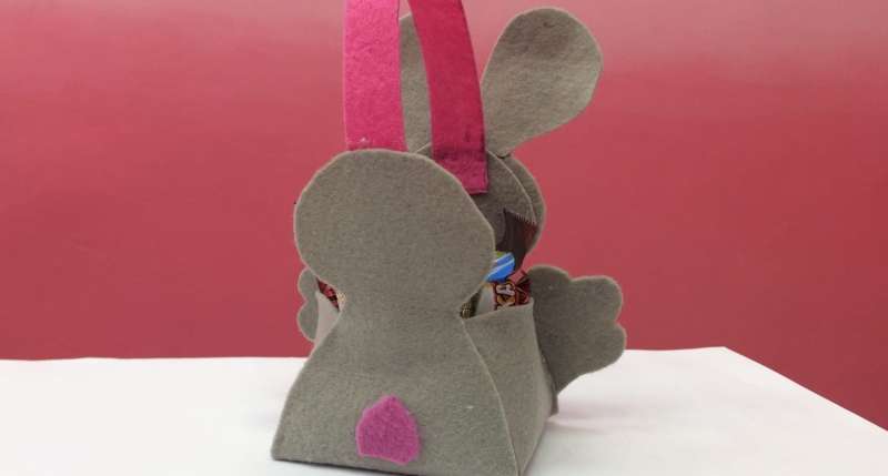 По итогу мастер-класса получится оригинальная корзиночка с изображением зайчика.