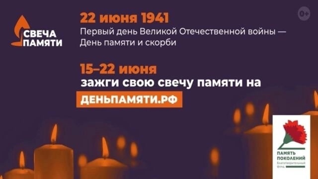 С 15 по 22 июня 2022 года состоится проведение Всероссийской акции «Свеча памяти».