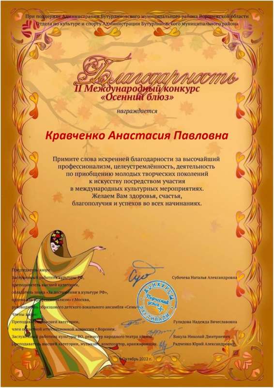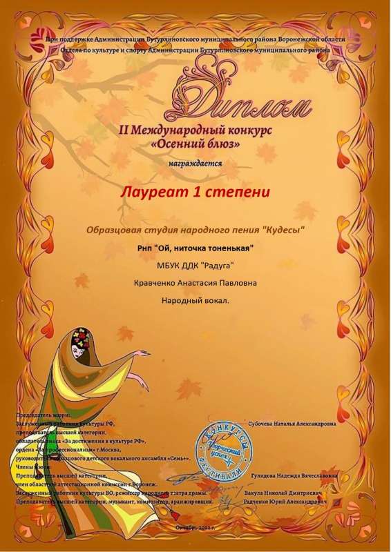 Поздравляем образцовую студию народного пения "Кудесы" с победой во II Международном конкурсе "Осенний блюз".
