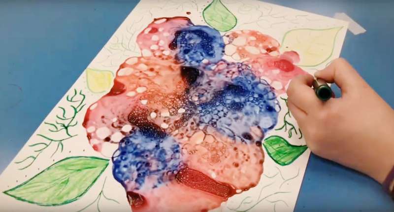 Мыльные пузыри-переливающиеся всеми цветами,всегда вызывают улыбку и восторг.Можно не только дуть пузырьки,но и делать их цветными,переносить на бумагу .Ребята группы 3-5лет сегодня попробовали освоить нетрадиционную технику ,нарисовав цветы для своих мам мыльными пузырями .