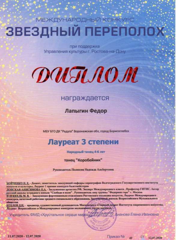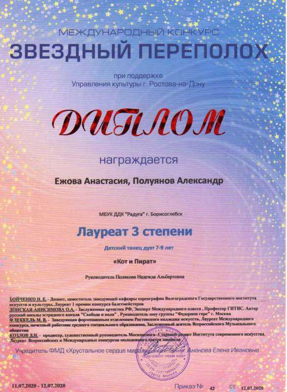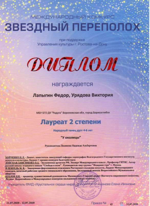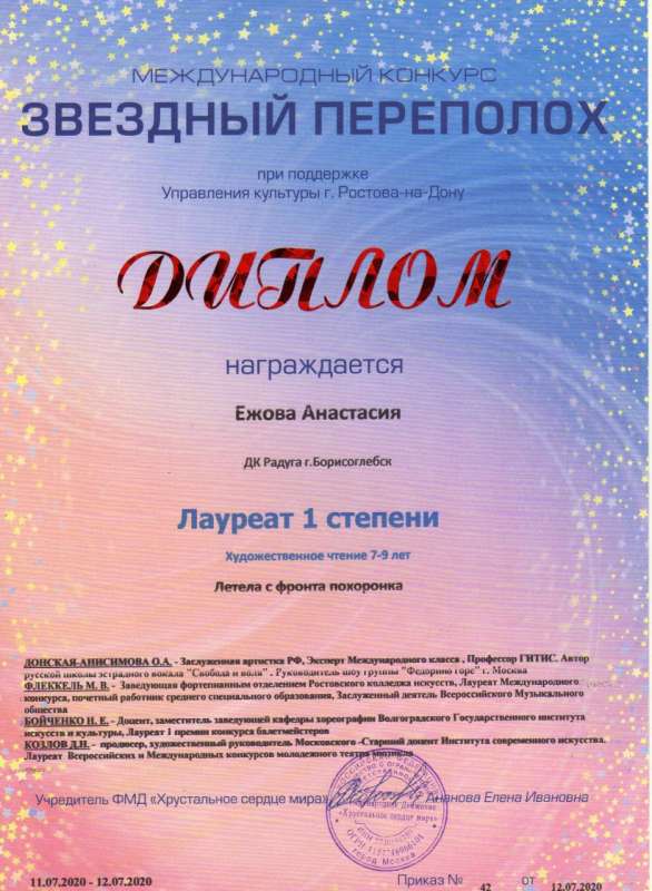приняли участие в Онлайн-конкурсе творчества и талантов «Звездный